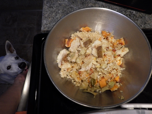 初めての犬用ご飯は、大成功!とっても美味しかったです。
